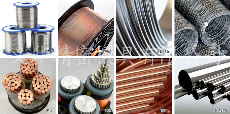 銅絲、鋁絲、電線電纜、不銹鋼焊絲、中、低碳鋼焊絲、不銹鋼線、低碳鋼線、銅管、鋁管、不銹鋼管等。